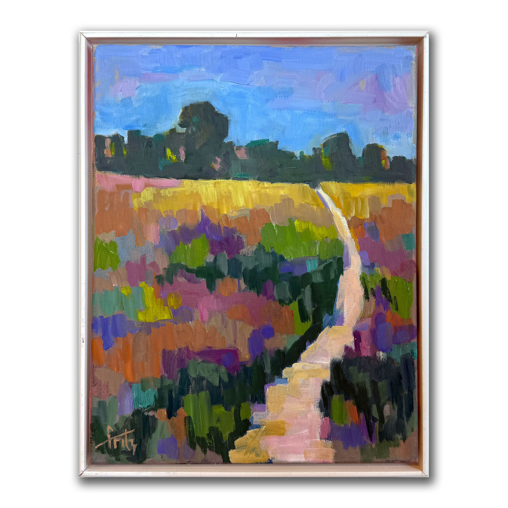 This gem was a preliminary study for a larger piece, with a narrow path winding through a meadow of dense color harmonies, leading to a golden yellow crest. The location is metaphysical.